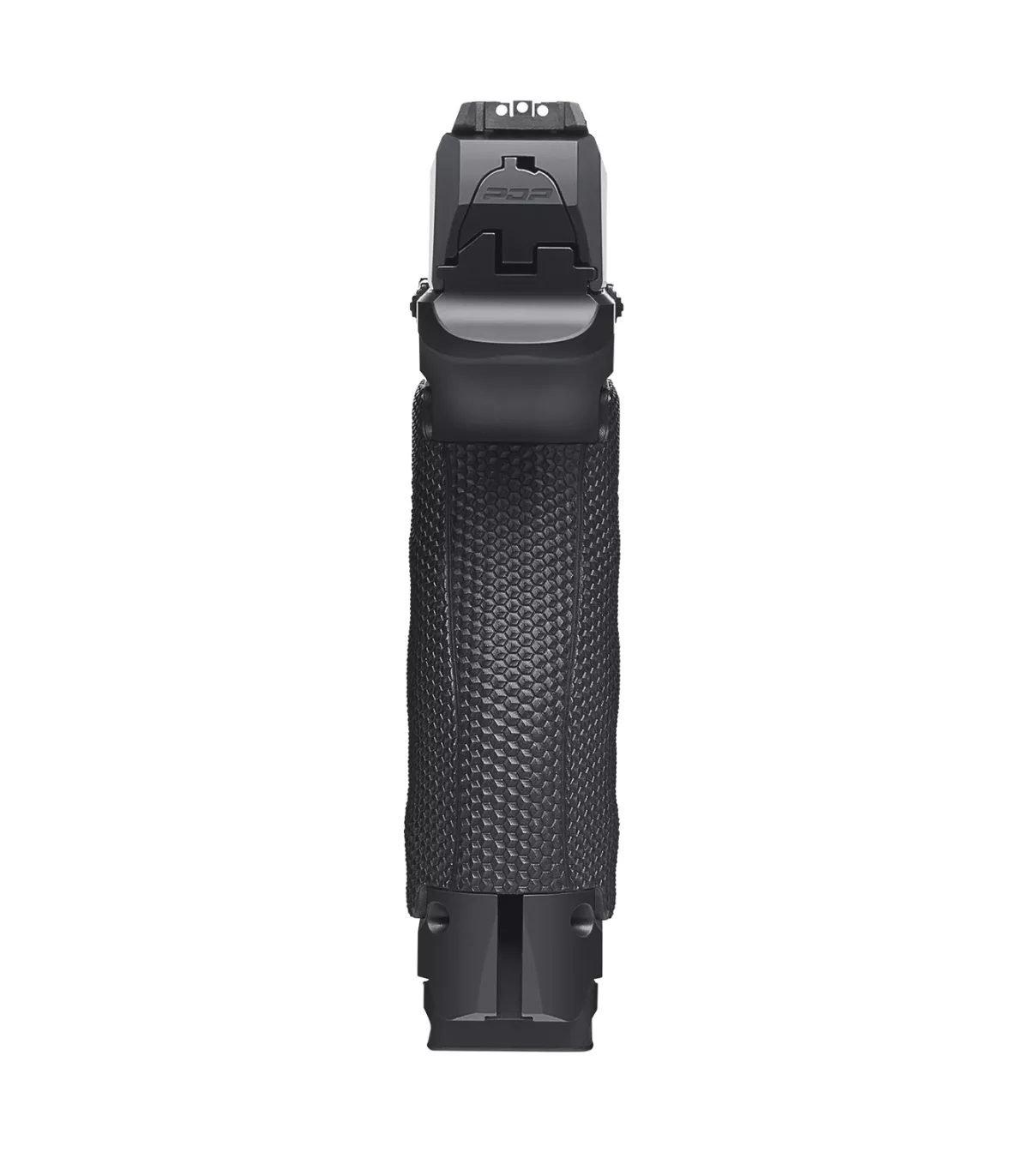 Le poids renforcé et la répartition des masses donnent une arme qui reste bien en ligne, même lors des enchaînements rapides. Les plaquettes de crosse en aluminium à texture Performance Duty assurent une adhérence ferme dans toutes les conditions, pour une prise en main constante et sécurisante. L’ergonomie générale reste fidèle à l’esprit PDP, avec une poignée travaillée pour guider naturellement la main.